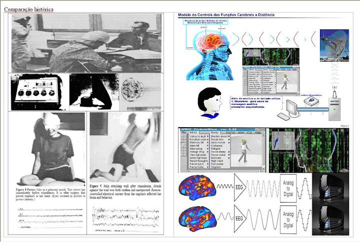 Em sua integra o artigo demostra como a tecnologia de produção de sons no cérebro é implementada, informando também como a tecnologia é expandida além dos limites da medicina. A aplicação clínica tem como objetivo fazer um surdo ouvir as mensagens, ou se comunicar com alguém inconsciente, pois o ouvido não é necessário, apenas a estrutura do cérebro na área do córtex auditivo precisa estar intacta. Como toda a tecnologia funciona por radiofrequencia, uma vez identificada a frequencia de um cérebro específico, pode-se ouvir as mensagens enviadas para aquele cérebro. Os padrões de modulação do córtex auditivo são diferentes de um receptor de radiofrequencia normal, por isso que radioamadores, por exemplo, não conseguem gravar mensagens enviadas ao cérebro. Para que isso seja possível, é preciso configurar o receptor de radiofrequencia para interpretar a modulação do sinal de acordo com o padrão compreendido pelo córtex auditivo. (Veja: How to record voice to skull V2K) Uma reportagem intitulada "Mind Games" do Washington Post fala sobre a produção de vozes na cabeça através do uso de computador, produzindo a telepatia sintética. Um antigo artigo, de 1974, da Times Magazine intitulado Science: Mind-Reading Computer, descreve como as ondas cerebrais podem ser interpretadas pela leitura dos padrões de EEG.O artigo Human Auditory System Response in Modulated Electromagnetic Energy de 1962 demostra como os sons podem ser induzidos por microondas e discute a possibilidade da produção de sons diretamente no cérebro. Este artigo representa o início das descobertas de indução de sons diretamente no cérebro. Uma características importante é a facilidade com que um operador do computador, ou o grupo ao qual ele pertence, pode enviar mensagens auditivas para o indivíduo mapeado, uma vez que a tecnologia esteja disponível. Delgado já havia conseguido isso ao instalar o Stimociver no cortéx auditivo.O artigo Microwave Hearing descreve um breve histórico do fenômeno de audição das microondas, desde a sua interpretação de variação termoestática do ouvido, até o aprimoramento para escuta direta no cérebro (V2K). O importante a se notar é que a voz intracraniana nem sempre parece ser estranha ao sujeito, muito pelo contrário, quase sempre ela substitui os pensamentos do indivíduo alvo. O pensamento é constítuido de sons e imagens criados pelo cérebro. No caso desses sons e dessas imagens serem produzidos externamente, o cérebro não sabe qual a diferença entre um pensamento natural, e um pensamento induzido a distância. É essa possibilidade de substituição dos pensamentos naturais, por pensamentos induzidos externamente que transforma a tecnologia em uma boa opção de controle social, seja na educação de crianças, seja na definição de comportamentos adultos. O maior problema do uso dessa tecnologia é o seu carater anti-ético. Por isso, ainda que possua vantagens sociais, como ferramenta de manipulação do comportamento e controle das funções cerebrais, a sua utilização é pouco divulgada uma vez que a manipulação do pensamento, de modo remoto e sem consentimento, se constitui em uma agressão aos direitos individuais, como postula a Declaração Universal dos Direitos Humanos, em seu artigo III "A pessoa tem direito à liberdade", inclusive a liberdade de ter seus próprios pensamentos. O principal objetivo do uso de voz intracraniana é causar intenso sofrimento físico e psicológico. O arquivo em anexo descreve a patente das tecnologias registradas bem como o modo de operação de quem usa a tecnologia. O vídeo sobre os cientistas do MKUltra mostra o contexto inicial dessa tecnologia.Há também um breve documentário sobre indução de esquizofrenia utilizando microondas. Apresentação da tecnologia que envia sons e mensagens direto para o cérebro através de microondas. Volte para a página inicial. Adendo do Blogger Nova Ordem mundial de Curitiba link para PseudoEsquizofrenia: https://sites.google.com/site/controlemental/home/voz-intracraniana/tortura-com-voz-intracraniana